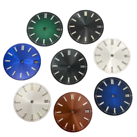 Esfera de reemplazo de caja de metal con acabado luminoso verde negro/azul opciones NH35