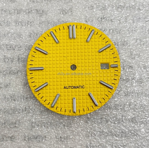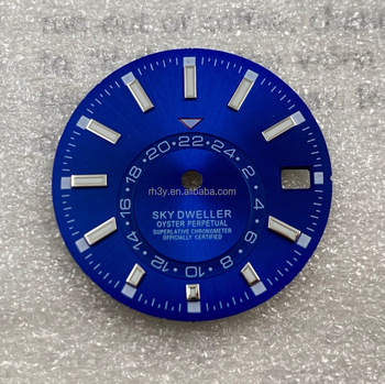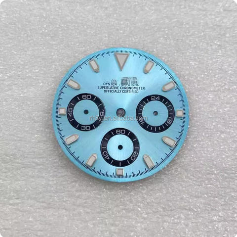 Esfera metálica luminosa azul Sunburst de 29mm, reloj mecánico NH35, piezas de productos sin texto