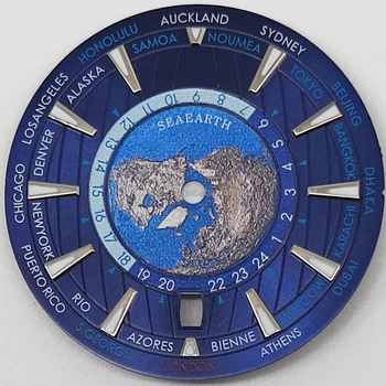 Esfera luminosa verde de hora mundial de 34mm para piezas de reloj de movimiento NH35 NH36